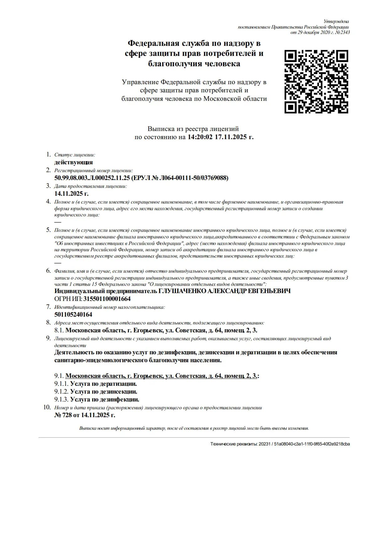 Все работы выполняются высококвалифицированными специалистами, которые имеют соответствующую сертификацию и большой опыт в области СанПин обработки. Мы гарантируем высокий результат всех наших процедур.